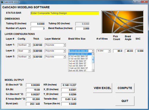 CathCAD® is the first commercially available software to analyze and predict the mechanical characteristics of microcatheters. CathCAD® predicts catheter rigidities (EA, EI, and GJ) as well as estimates applicable failure modes including tensile strength, torsional strength, kink radius, and burst pressure. Visit our website at www.cathcad.com to learn more.